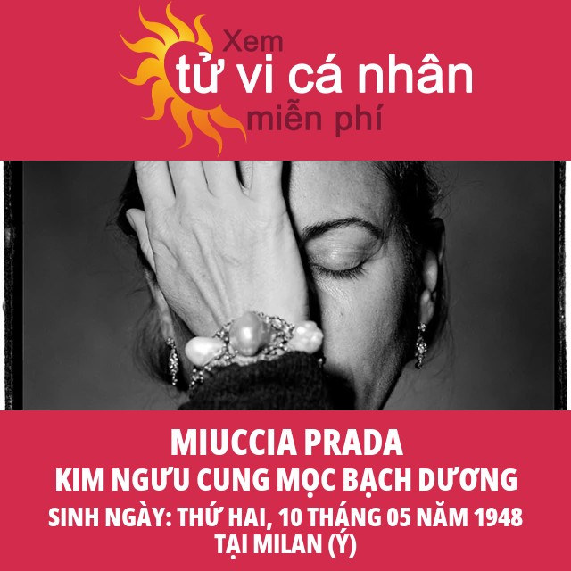 Chào mừng bạn đến với bức chân dung chiêm tinh kỳ diệu của biểu tượng Miuccia Prada! Sinh ngày 10 tháng 5 năm 1948, tại thành phố thời trang Milan, cô thể hiện tinh thần thực sự của một người thuộc cung Kim Ngưu. Với quyết tâm kiên định và con mắt thẩm mỹ tinh tế, Miuccia đã thay đổi diện mạo của ngành thời trang, chứng minh rằng sự sáng tạo và kiên cường có thể song hành cùng nhau. Nổi tiếng với những thiết kế đổi mới và trí tuệ sắc sảo, cô mang đến sự kết hợp hoàn hảo giữa sự trang nhã và một chút nổi loạn vui tươi trong thế giới haute couture. Khi chúng ta khám phá bản thiết kế vũ trụ của cô, chúng ta sẽ phát hiện ra những ảnh hưởng thiên thể định hướng tầm nhìn độc đáo và sức hấp dẫn không thể chối từ của cô. Hãy cùng tìm hiểu những vì sao đã chiếu sáng hành trình đáng chú ý của Miuccia Prada!